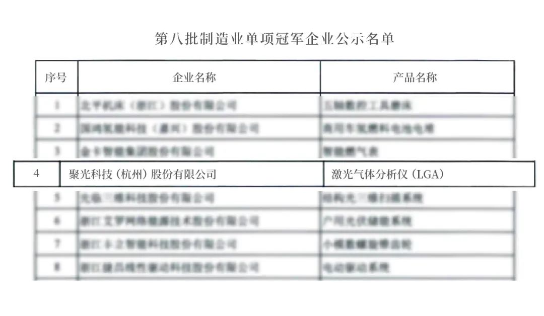 近日,工信部公示第八批制造業(yè)單項冠軍企業(yè)遴選認定名單。聚光科技憑借激光氣體分析儀(LGA)入選,成為本批浙江省僅有的23家入選企業(yè)之一。