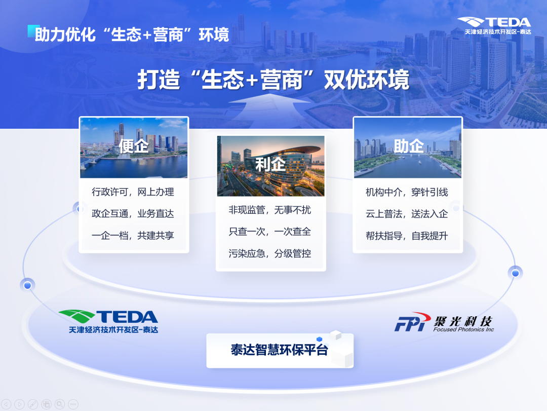 以聚光科技多年服務(wù)和持續(xù)建設(shè)的天津經(jīng)開區(qū)智慧環(huán)保平臺(tái)為載體,由天津經(jīng)濟(jì)技術(shù)開發(fā)區(qū)生態(tài)環(huán)境局申報(bào)的“智慧環(huán)保助力優(yōu)化‘生態(tài)+營商’環(huán)境”成功入選典型應(yīng)用。