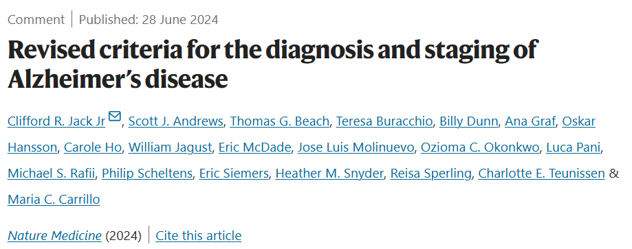 近日,由阿爾茨海默病協(xié)會召集的一個工作組確定了2024年最新阿爾茨海默癥的診斷和分期標(biāo)準(zhǔn),并于6月27日發(fā)表在《Alzheimer's & Dementia® 》雜志上,是對2011年和2018年診斷標(biāo)準(zhǔn)的再次更新。